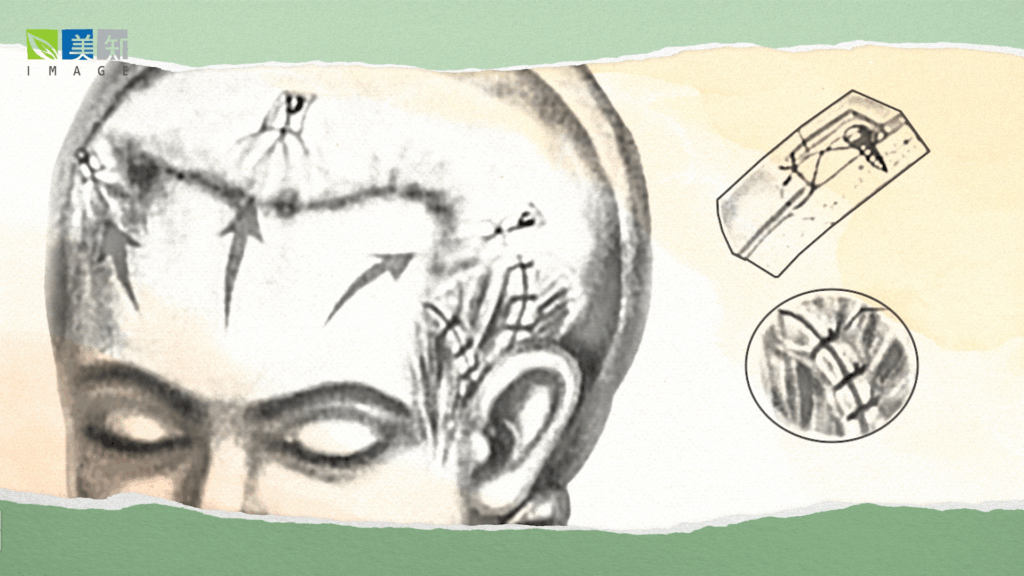그때 물린 두피의 골막이나 전두근 같은 조직이