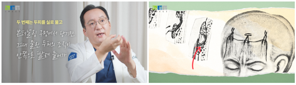 눈썹ㄷ부터 이마까지 쭉 펴지도록 해주는